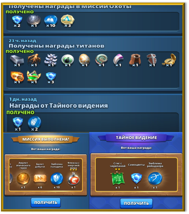 - Сундук титана (Миссия Охоты). Награды с него получать можно в среднем раз в неделю. Максимальное количество получаемых эмблем — 10 штук.